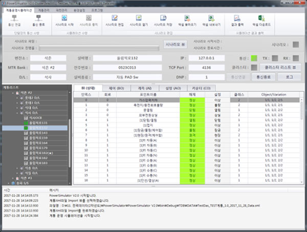 배전 자동화 시스템과 통신하는 단말장치의 기능을 시뮬레이션 하는 시뮬레이터를 이용하여 여러 가지 데이터를 주고 받고 제어 또는 상태 등을 모니터링 할 수 있으며, 각종 사고에 대한 임의의 시나리오를 생성하여 배전 자동화 시스템을 검증할 수 있습니다.