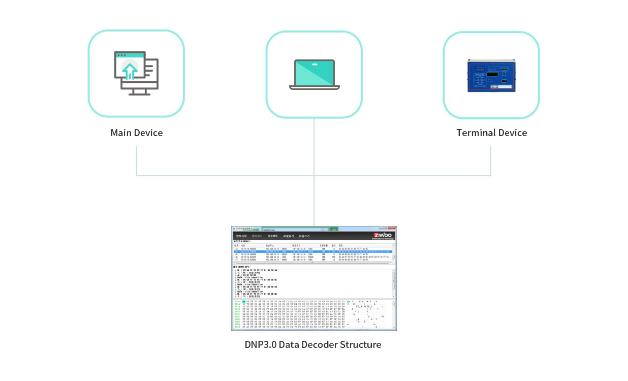 A packet decoder that can analyze the packets sent and received between communication modules that use the DNP 3.0 protocol. The DNP 3.0 communication protocol is widely used in many fields of power IT. Recently, this protocol has been replaced by IEC61850 but is still used by many applications. The DNP 3.0 packet decryption program helps to monitor and analyze the packet sent and received between communication modules that use the DNP 3.0 protocol using the WinPCap library.