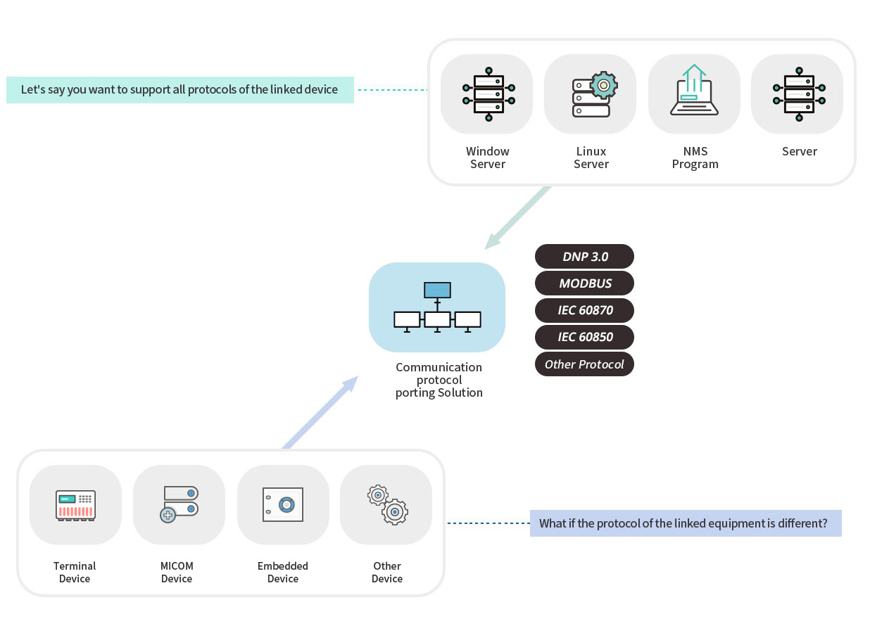 Various communication protocols (DNP 3.0, Modbus, IEC 60870, IEC 61850, etc.) are supported for communication between devices.